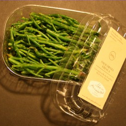 Rebentos entre 5 a 6cm de Salicórnia fresca, recolhida entre Março e Setembro, na Marinha dos Puxadoiros, na Ria de Aveiro em Portugal. A salicórnia cresce de forma natural nas antigas marinhas de sal da Ria de Aveiro, existindo na Ilha dos Puxadoiros de forma abundante e com um bom travo salgado ao paladar. Não foi utilizado qualquer tipo de fertilizante ou qualquer outro meio químico para o seu cultivo.